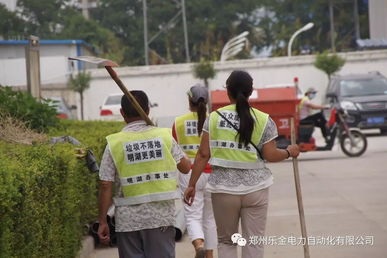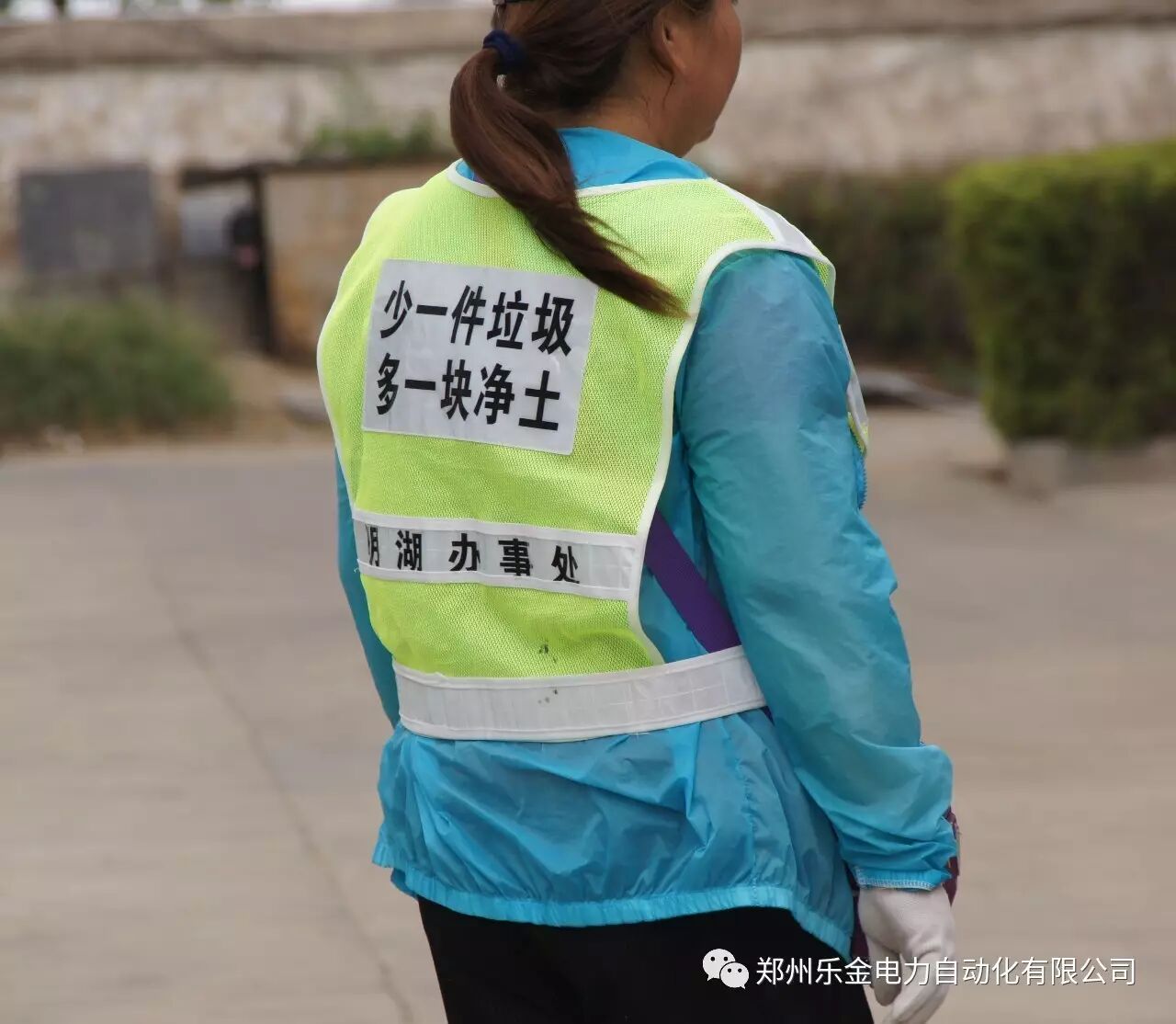 (环卫工身上印着宣传标语)